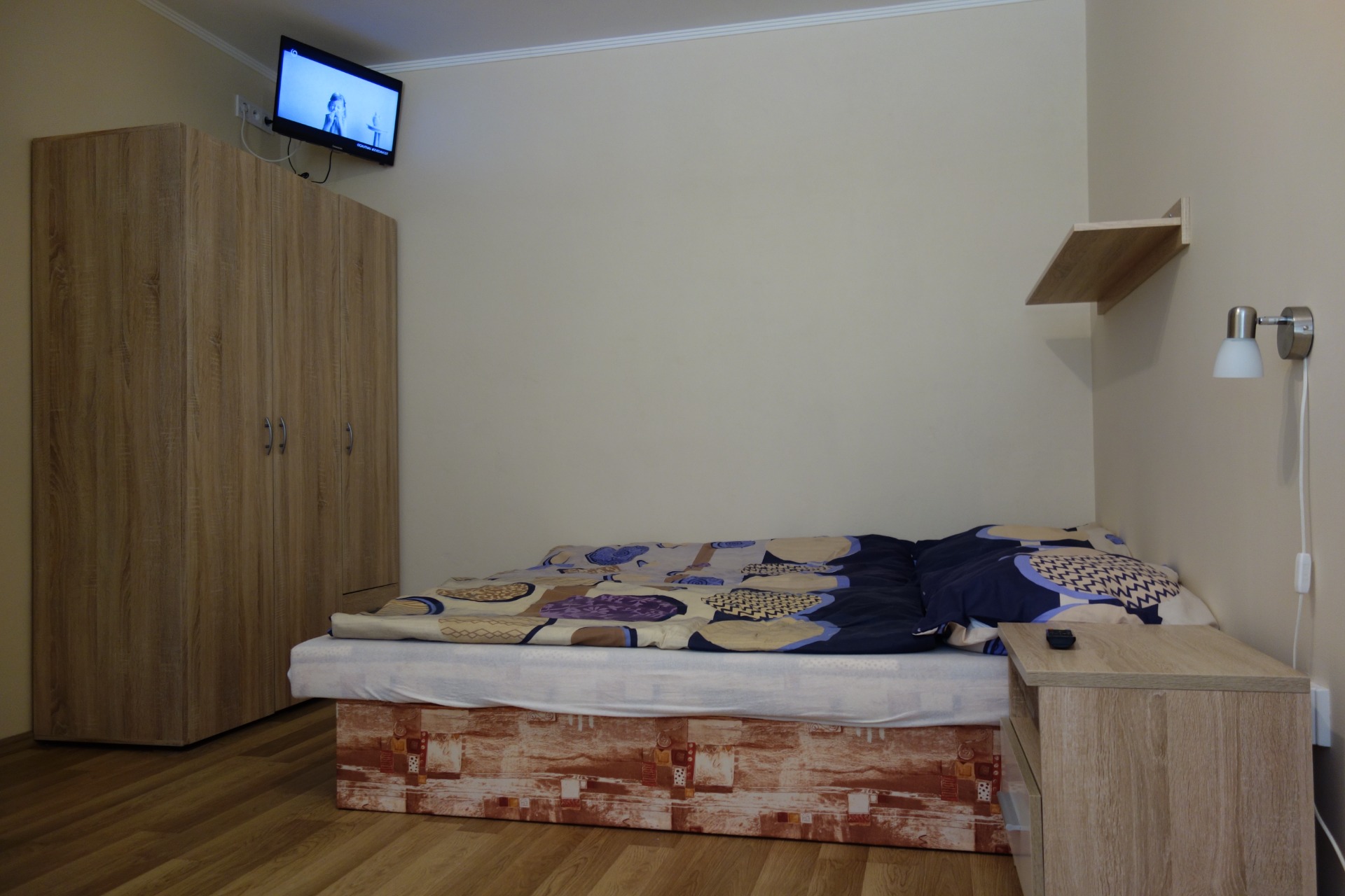 Kapacita štúdia sú 4 osoby. V štúdiu je v jednej miestnosti spojená spálňa a kuchynka s jedálenskou časťou. K štúdiu patrí kúpeľna so sprchovým kútom a toaletou.